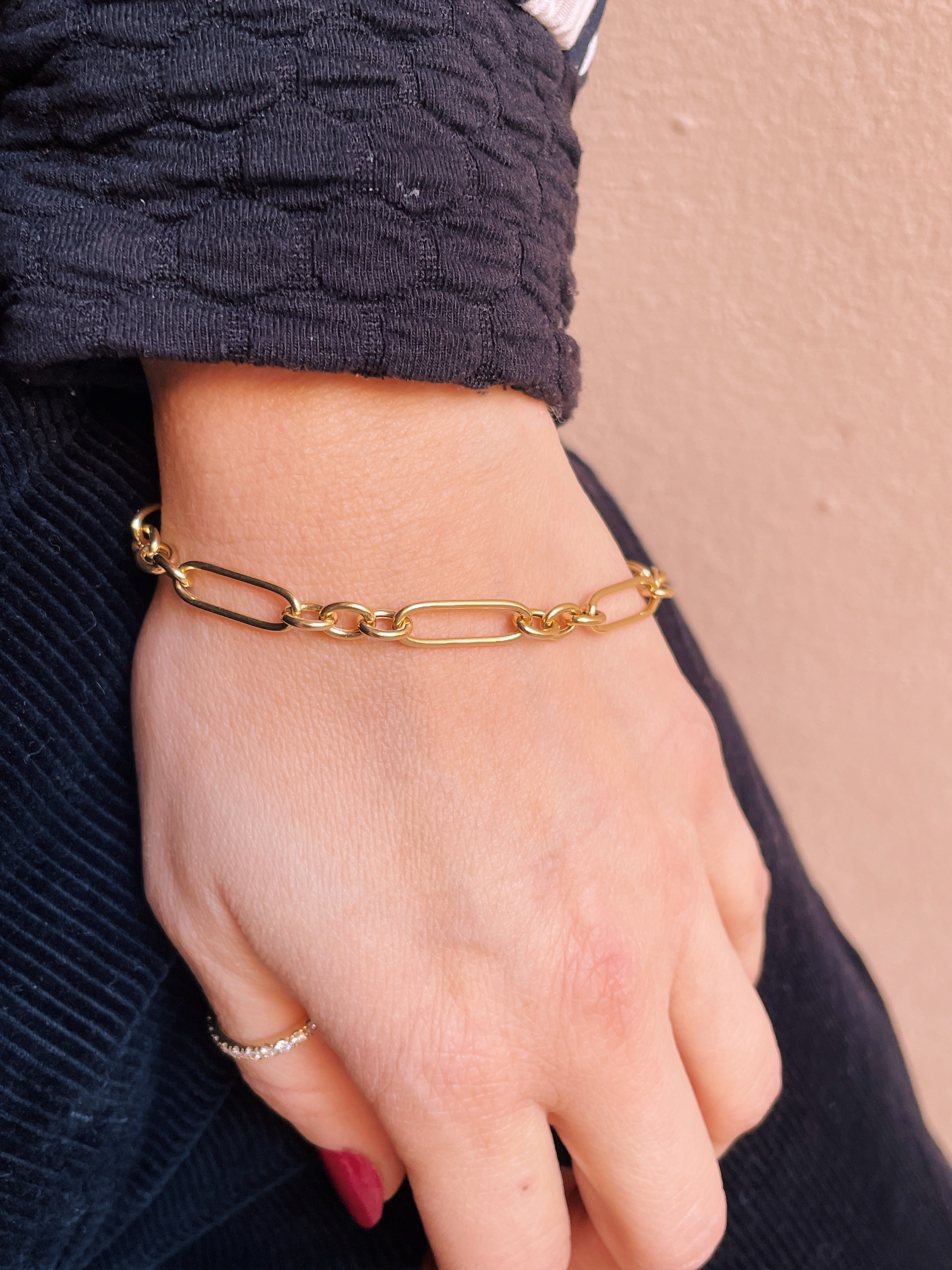 Link up your wrist with this customer favourite. This alternating Round Tube Paperclip bracelet available in both silver and yellow gold plated. Crafted in Italy with a beautiful attention to detail, this bracelet is easy to wear everyday. A must-have for anyone who loves jewellery that's adjustable and chic.