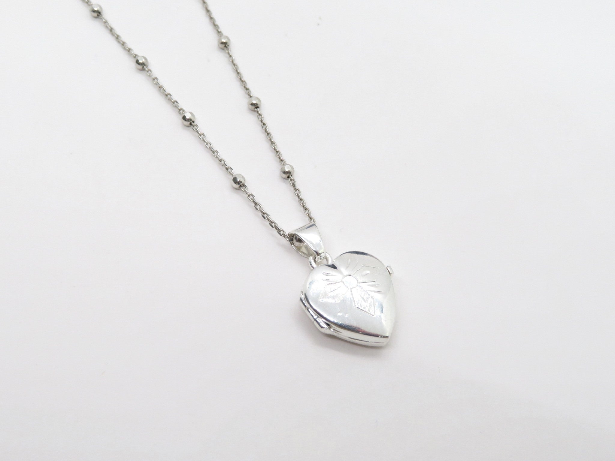 A true classic to anyone's jewellery collection is an etched locket. This pendant has an engraved floral detailed front side and high polished back. The paper inserts can be replaced with a personal photograph. Chain sold separately.