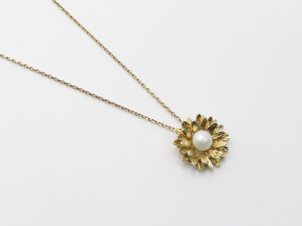 14k Yellow Gold Pearl Drop Tub Necklace