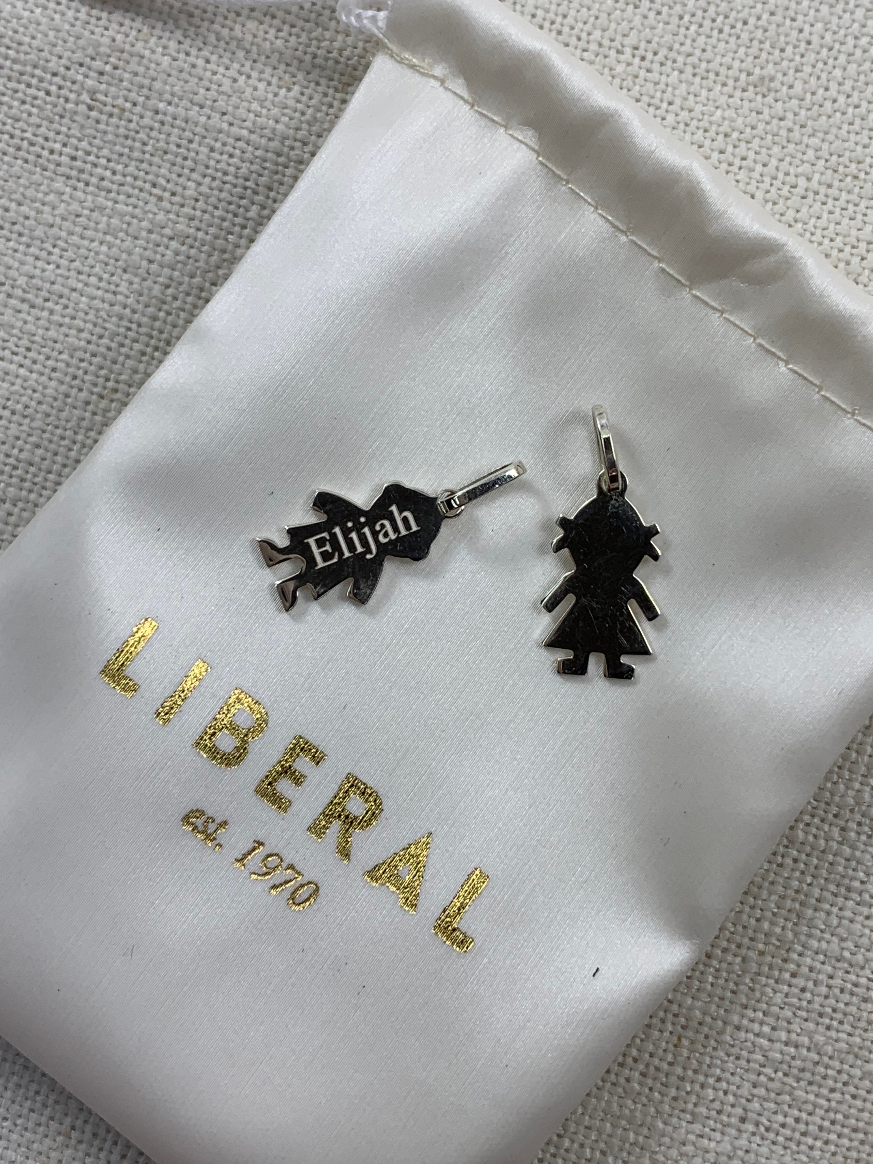 Our clients love to wear these cutout children pendants solo or grouped to represent the members of their family.  Nicely finished with a smooth and high polished look, these pendant's are a cute collectible. Upgrade by engraving names or initials to add a personalized touch!