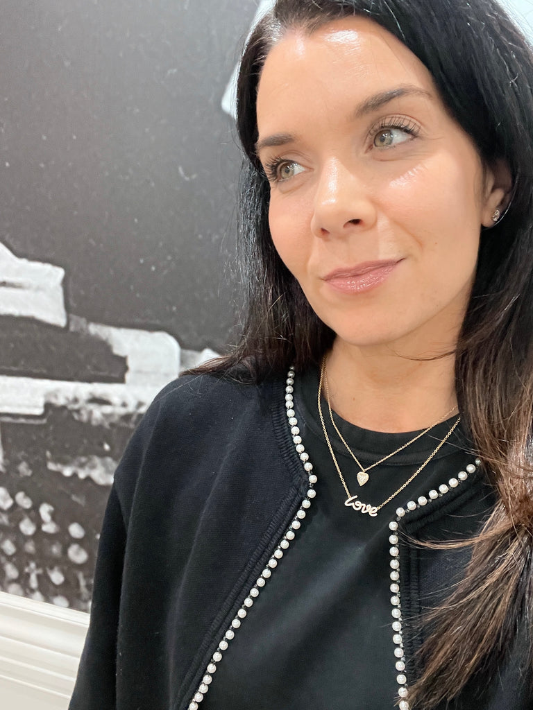 A classic heart necklace for any day of the week. This pavé set cubic zirconia necklace is finished with a bead trim bezel for some added texture. Also available in rhodium white.