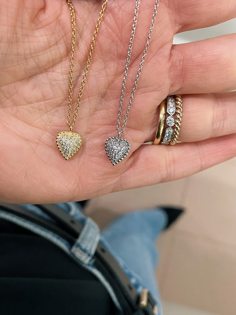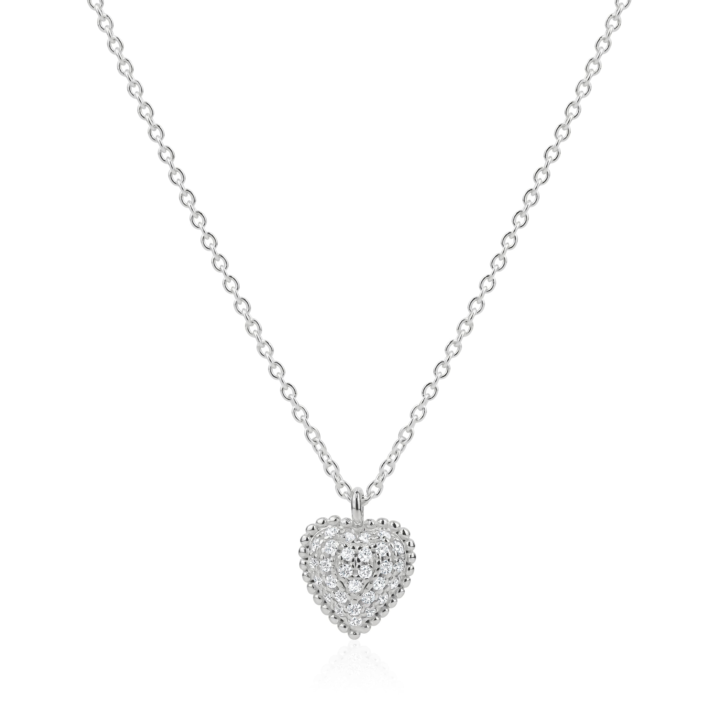 A classic heart necklace for any day of the week. This pavé set cubic zirconia necklace is finished with a bead trim bezel for some added texture. Also available in gold vermeil.