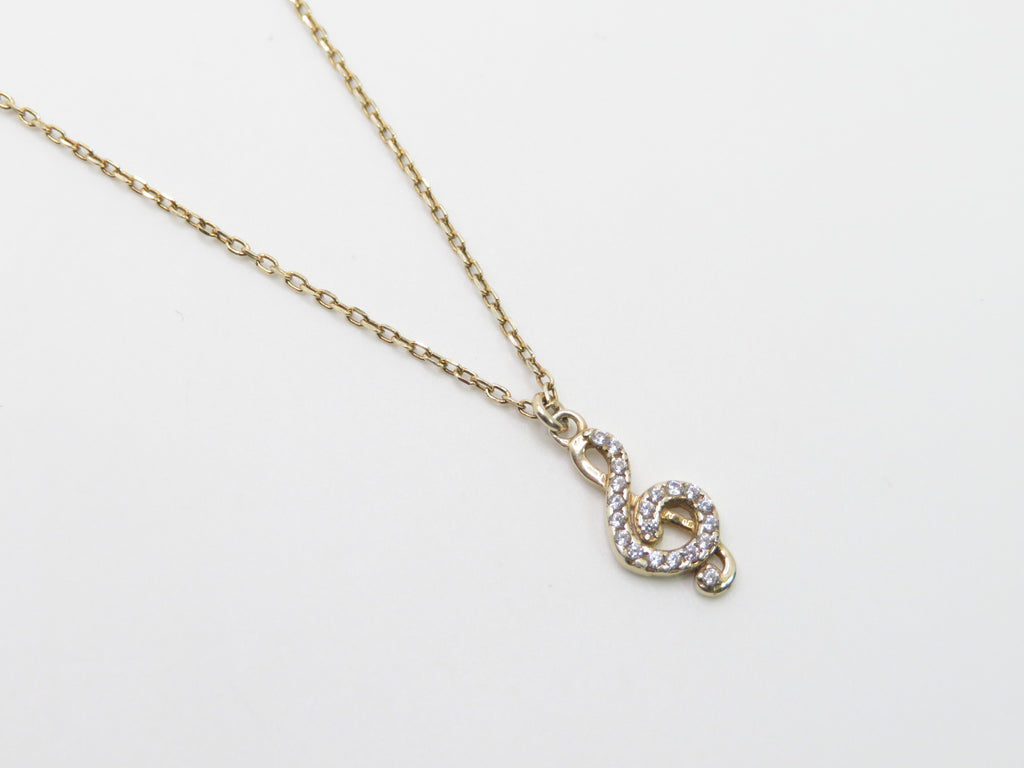 This piece is for the music lover or musician. A single treble clef set with cubic zirconia for some magical sparkle.