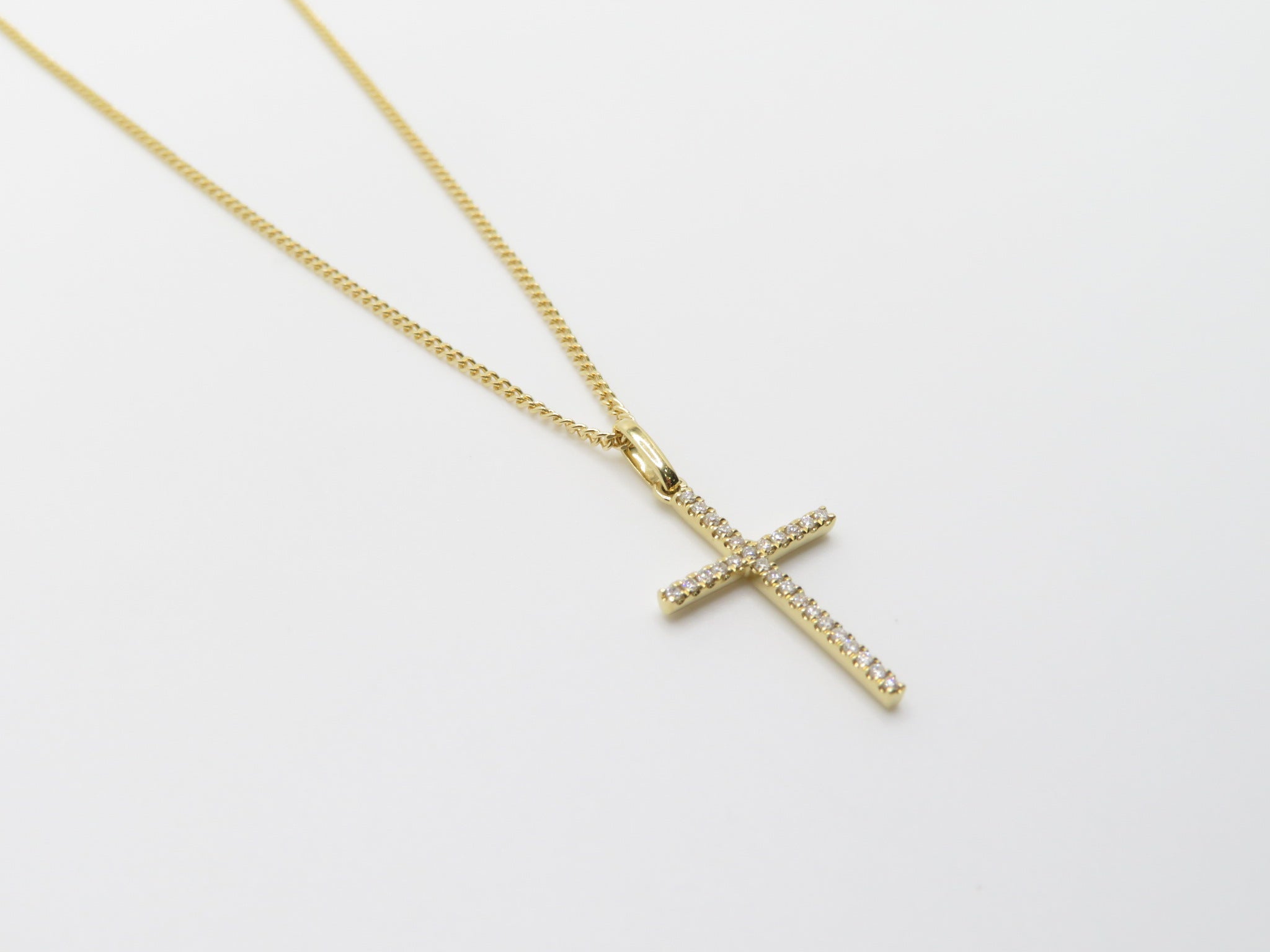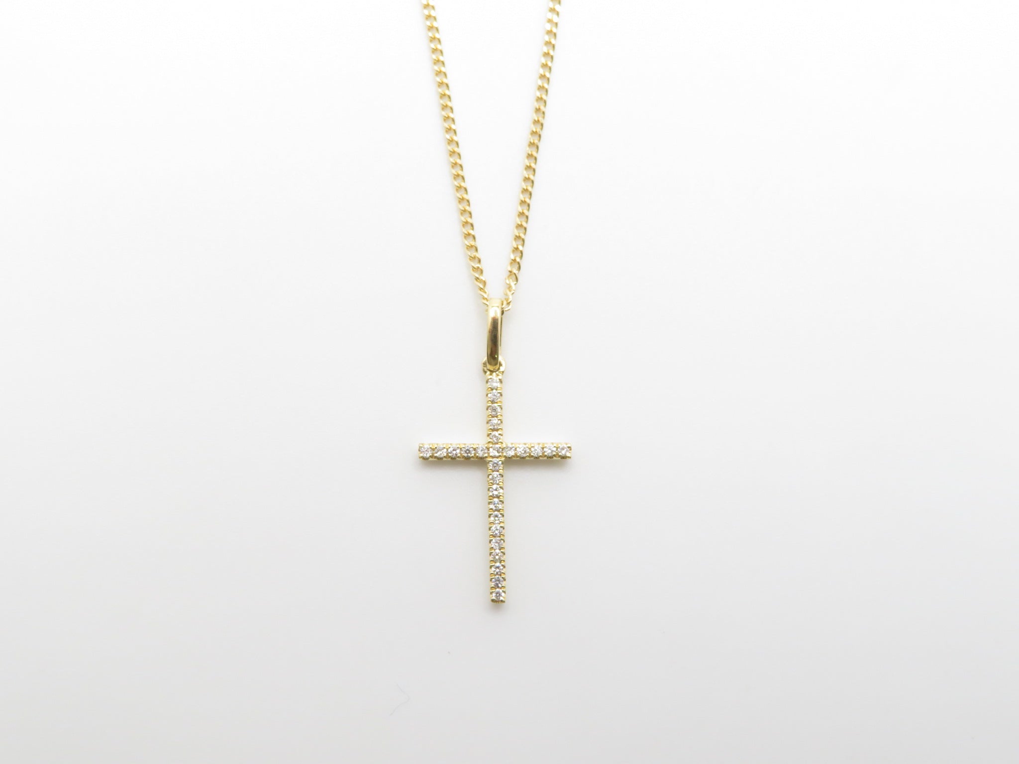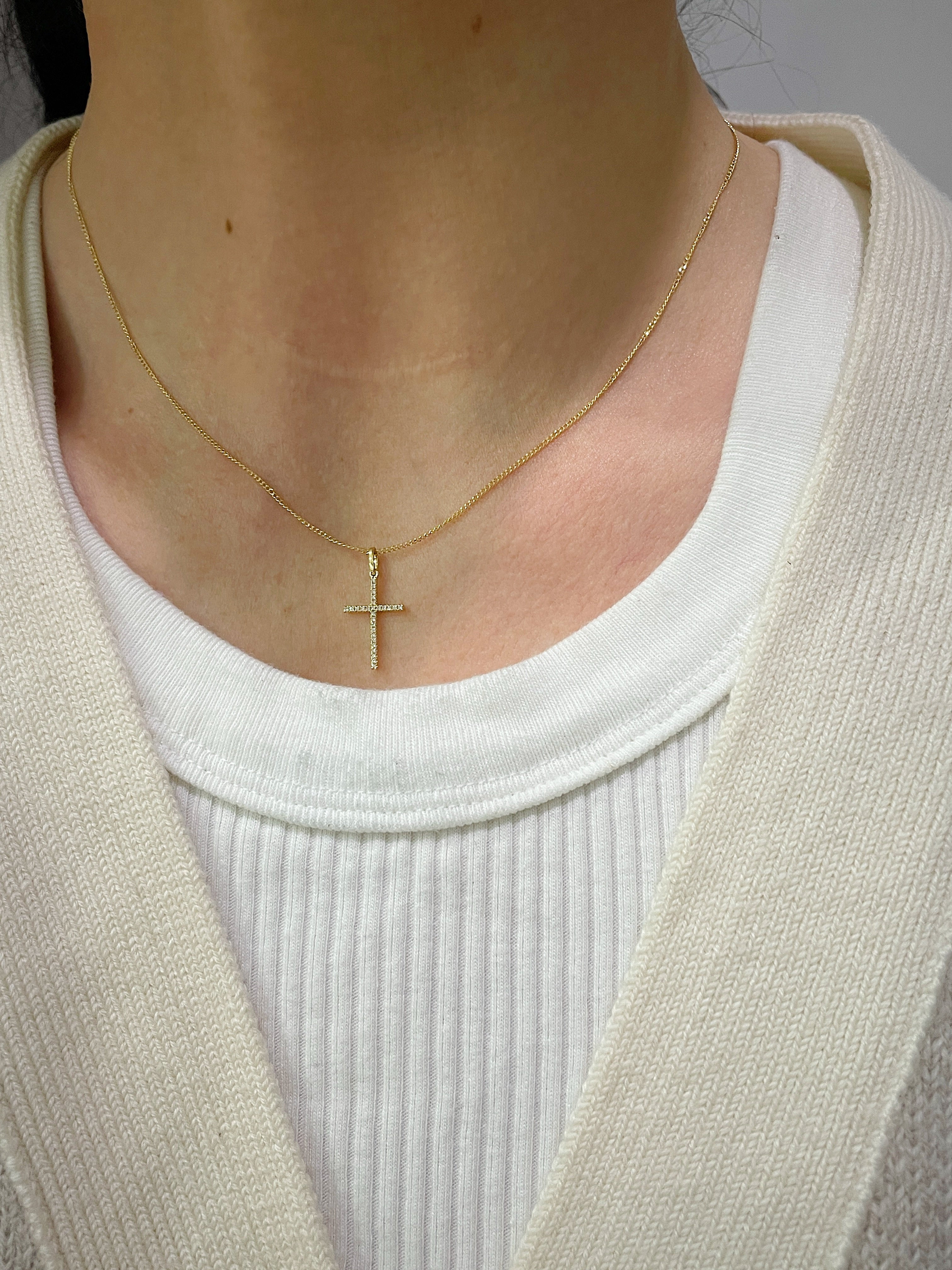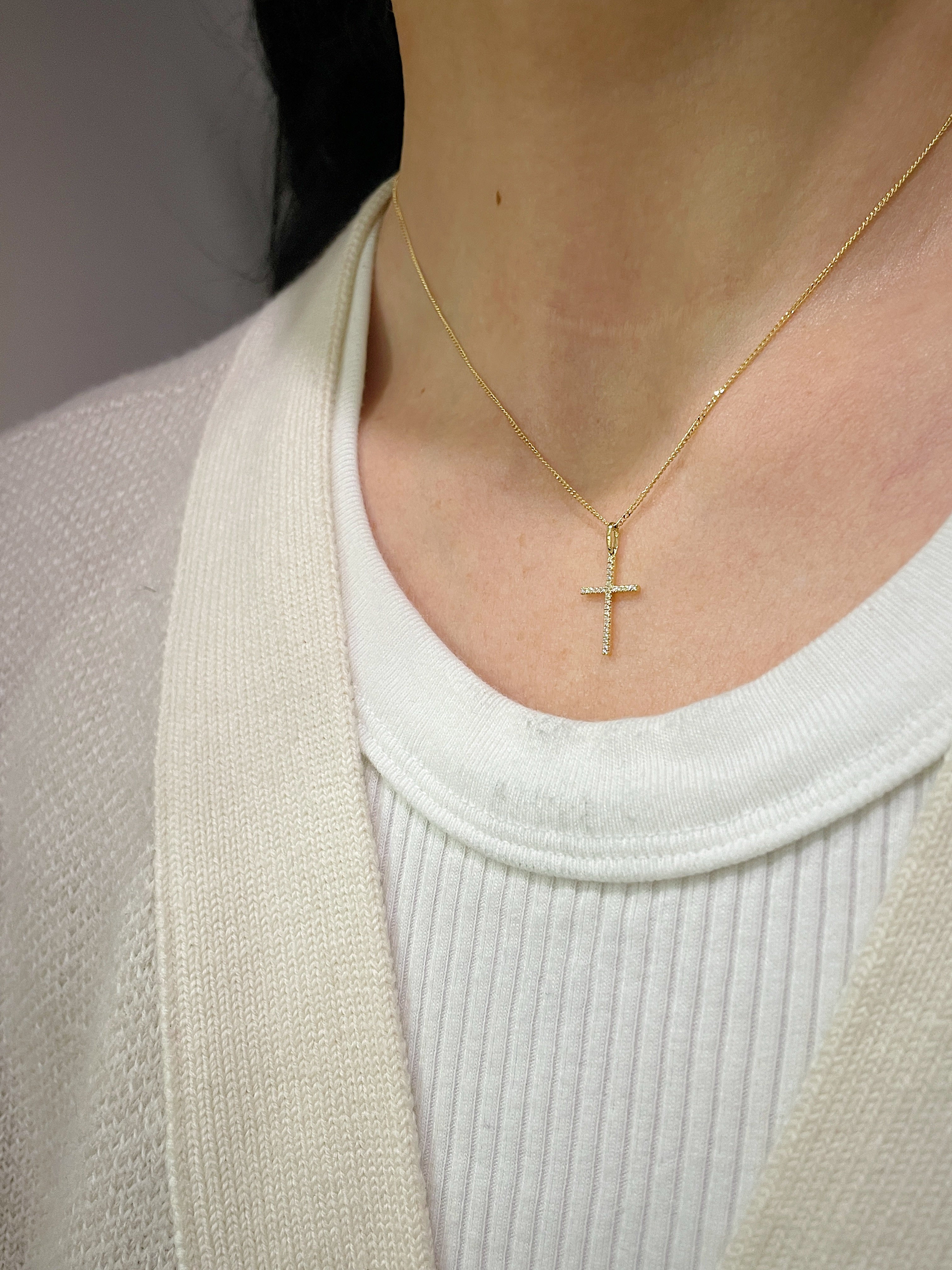 18k Yellow Gold Diamond Dainty Cross Necklace