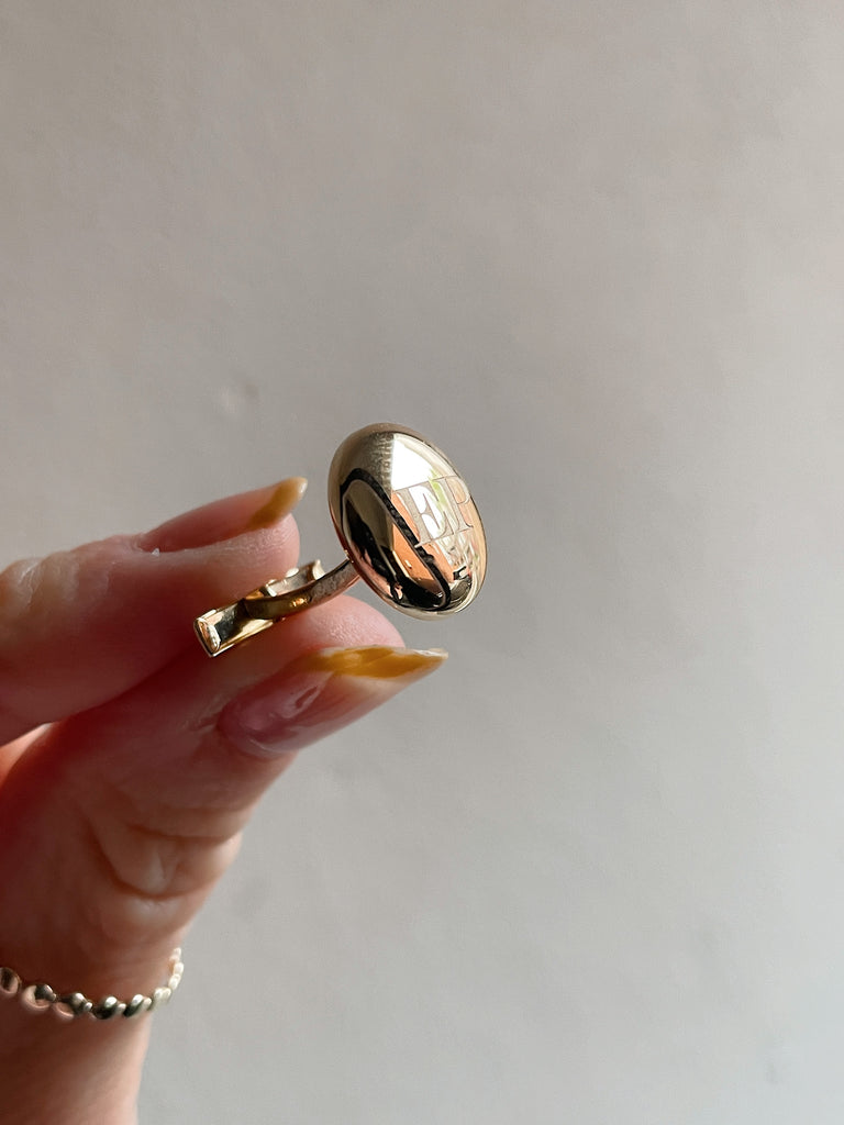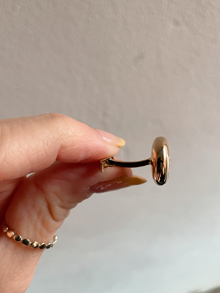 It isn't often that we carry Portuguese gold cufflinks so why not carry one pair that is timeless and effortlessly chic? These domed high polished cufflinks are timeless and itching for a beautiful monogram. Finished with a flexible, whale back fastening.