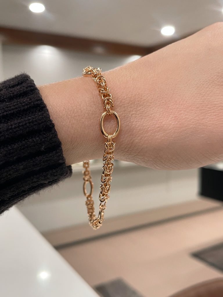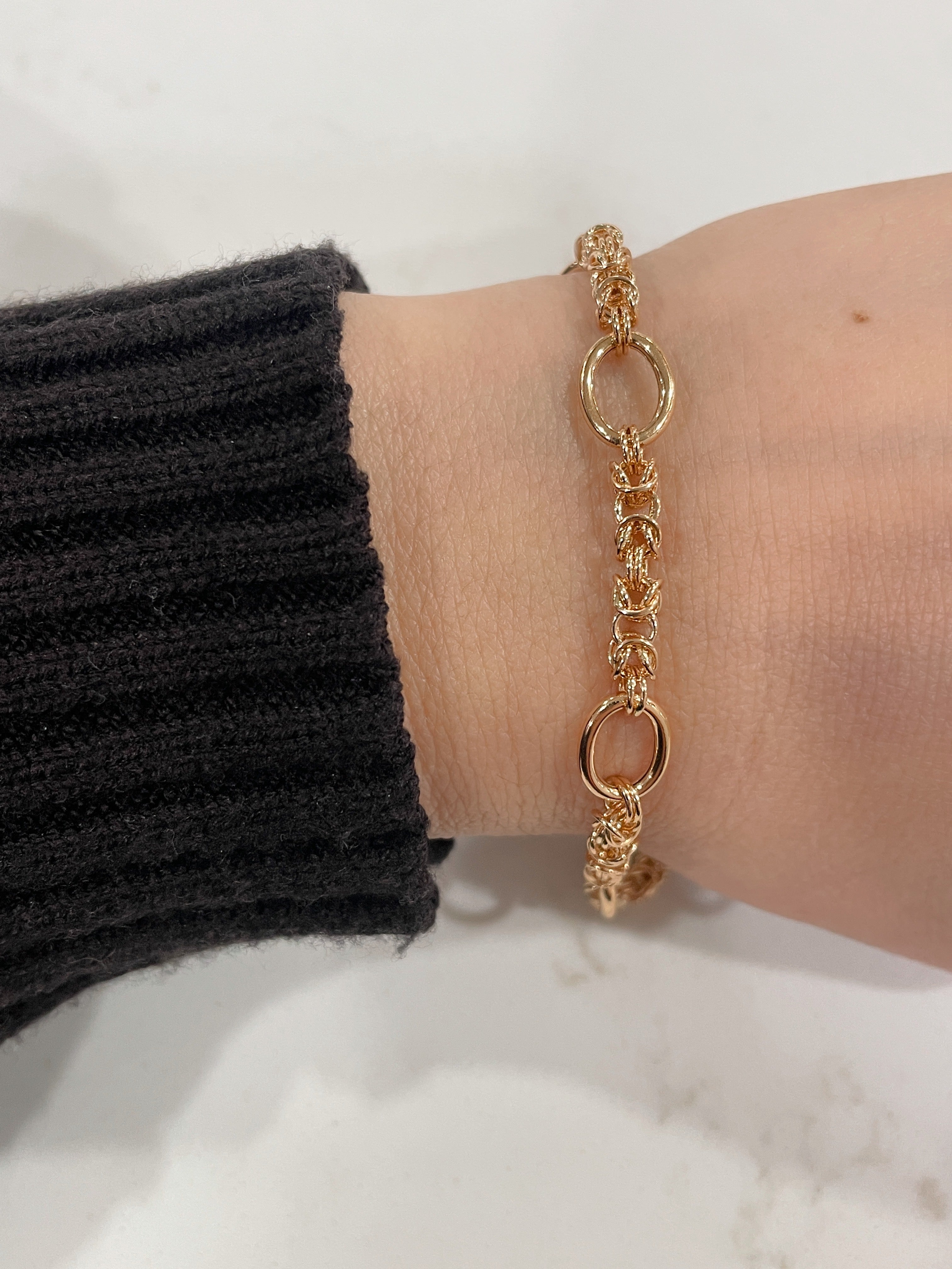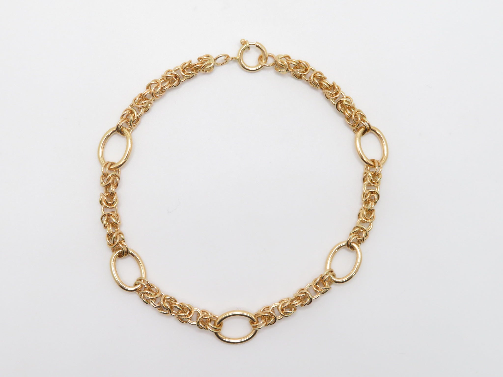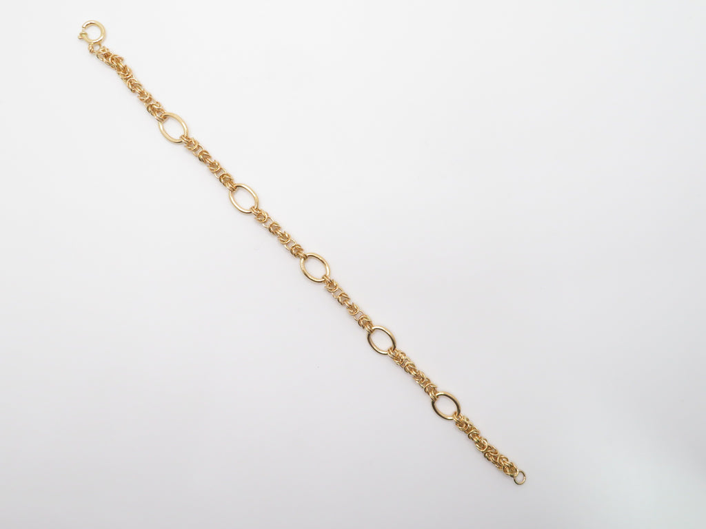 This traditional bracelet's link pattern is famous in Portugal. With it's interlocking link pattern that looks like a 'mesh', and the five smooth polished oval link accents, this has been one of our all time best selling bracelets of all time. Finished with a nice size spring clasp for easy wear and with the option to accessorize with a charm or to leave