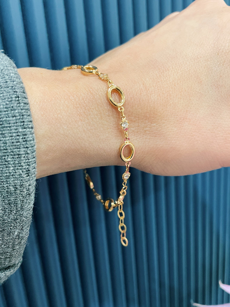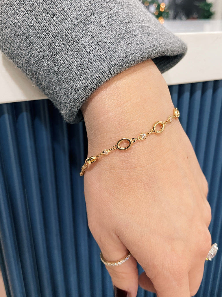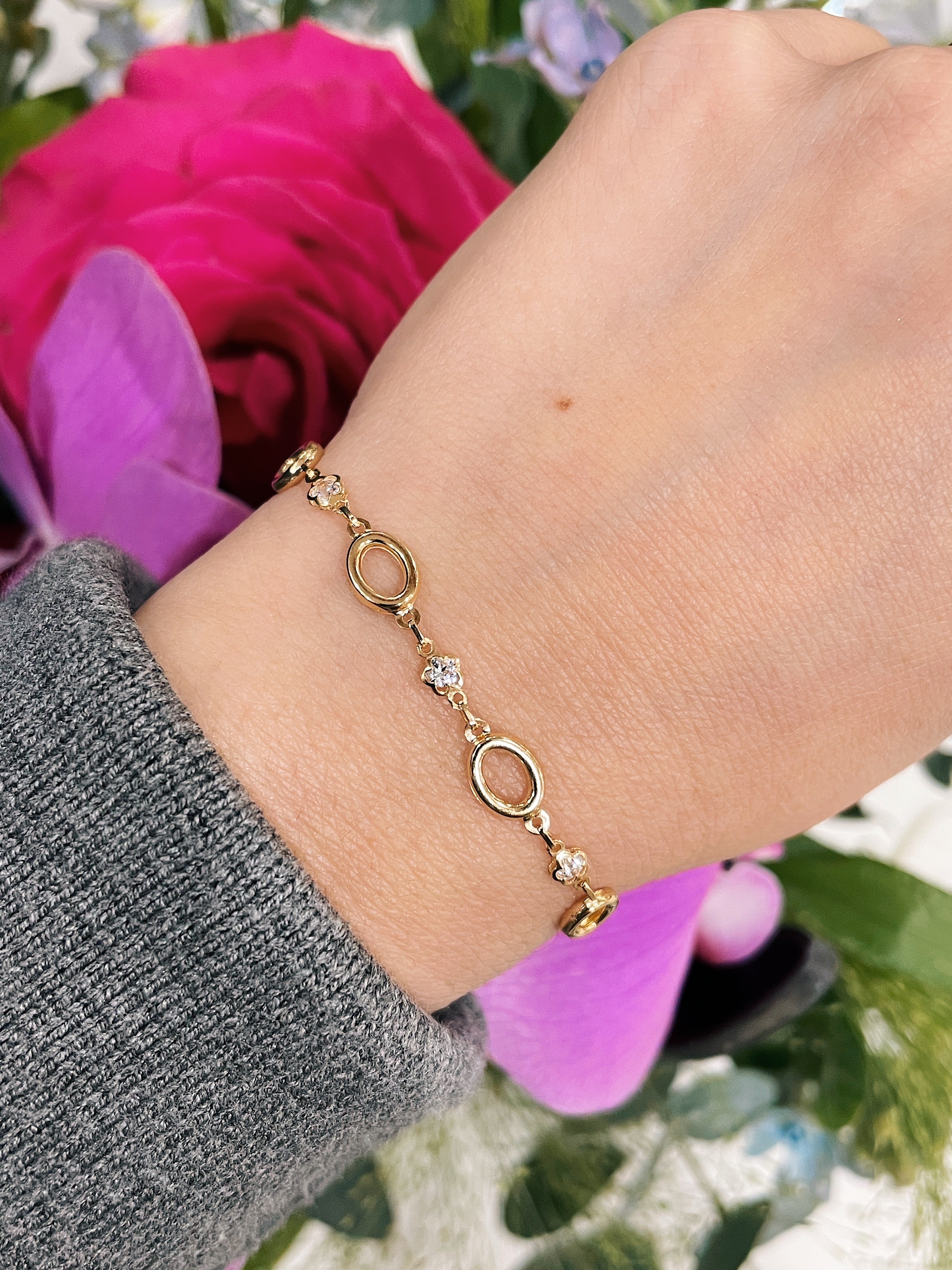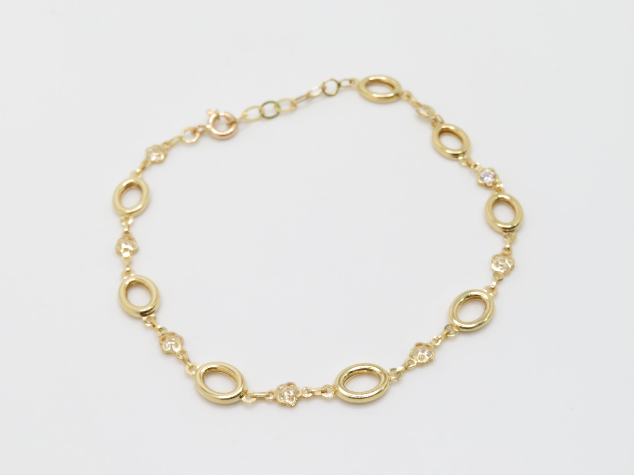 19.25k Yellow Gold Oval & Daisy Link CZ Bracelet