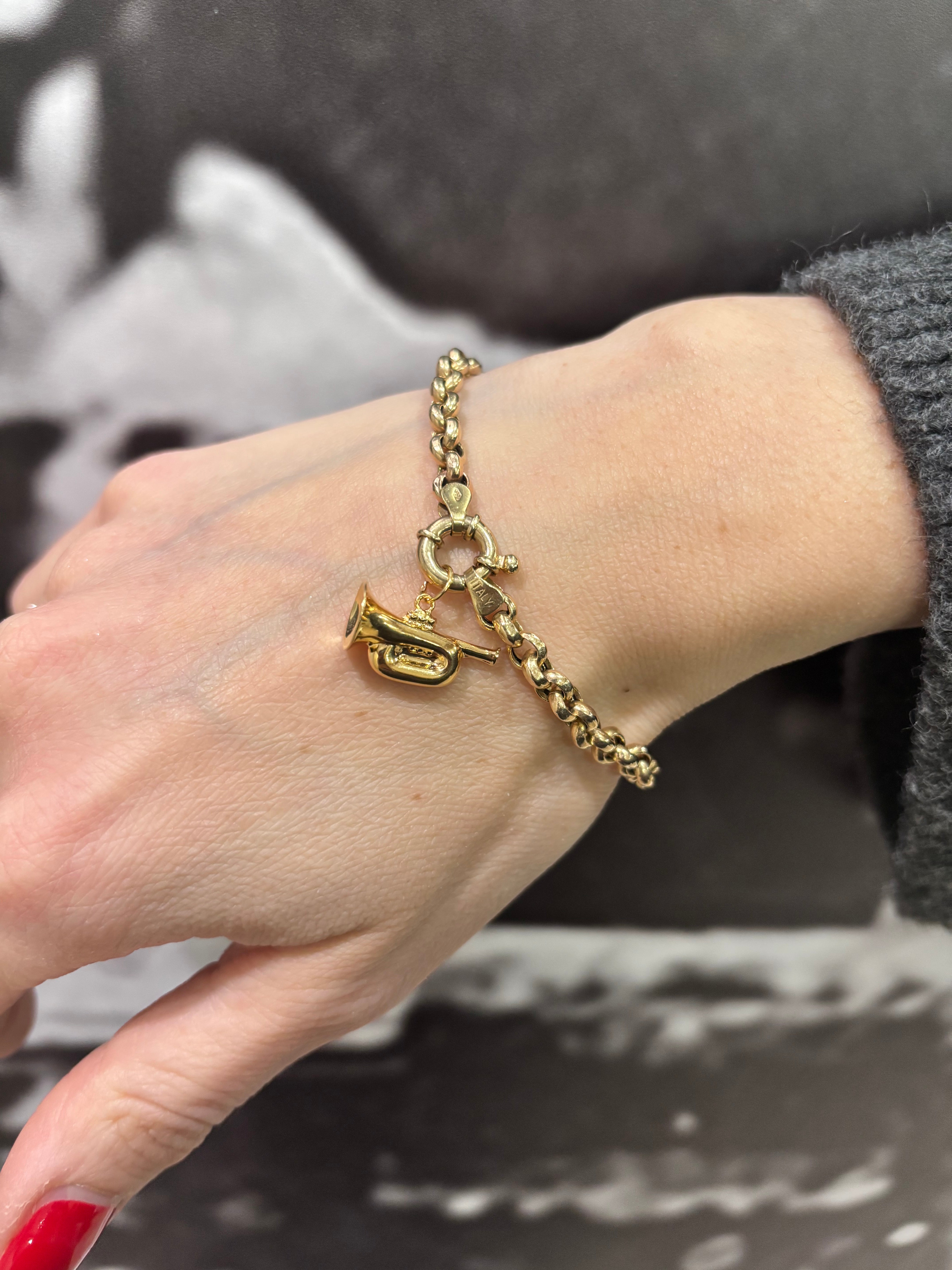 Is there anything sweeter than this? Our three dimensional Trumpet charm is sure to be a topic of conversation at your next gathering. The proportions are just perfect for a chunky gold bracelet or as a pendant for your day to day necklace.