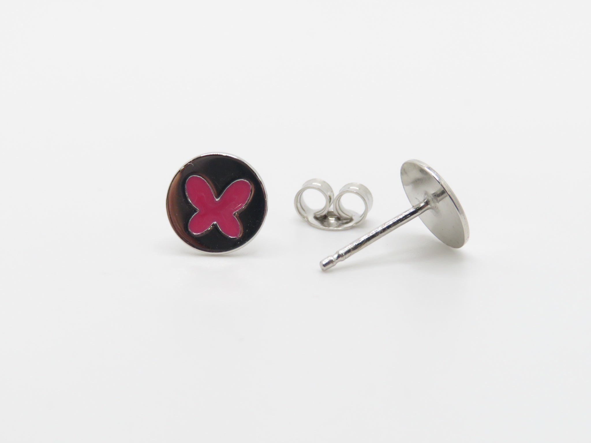 It was love at first sight with these pink butterfly enamel studs. Pair it with the matching necklace and bracelet to complete the look. Finished with classic butterfly backings.