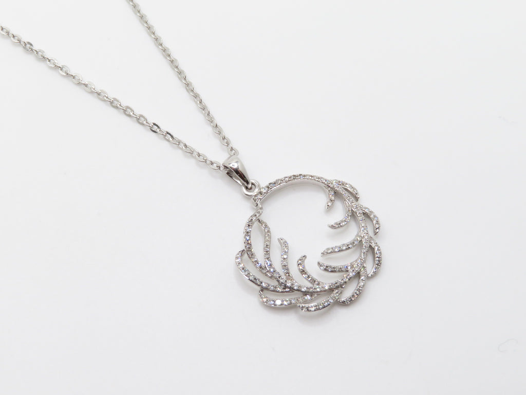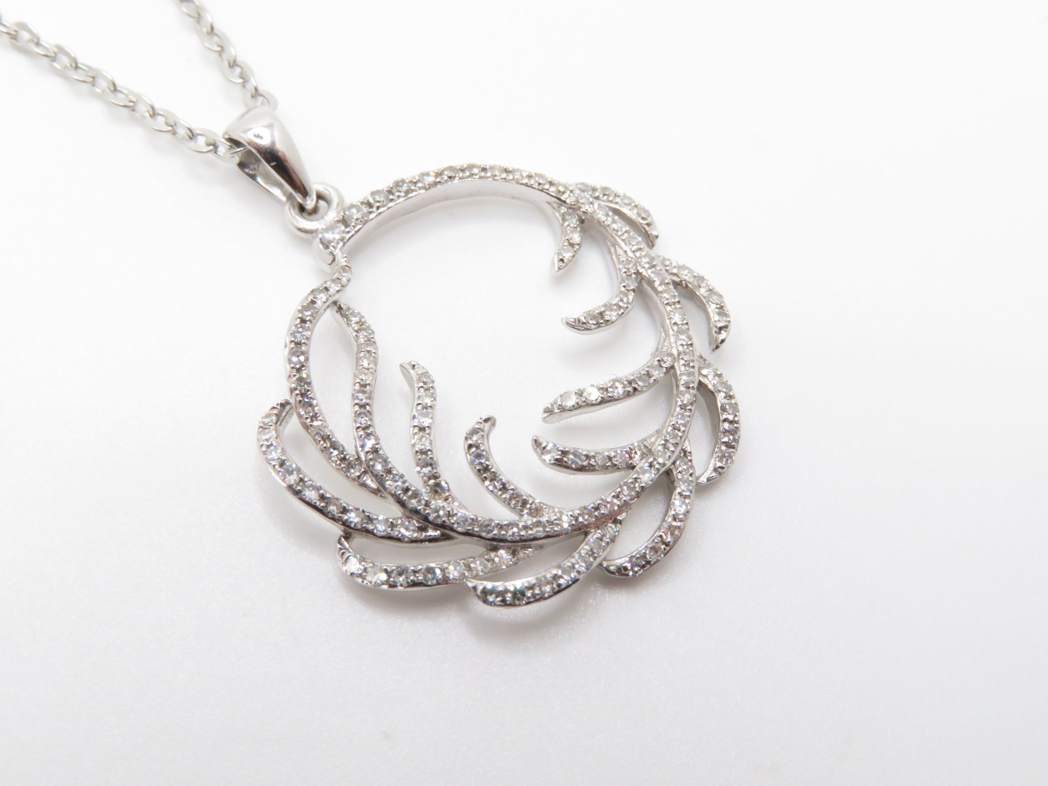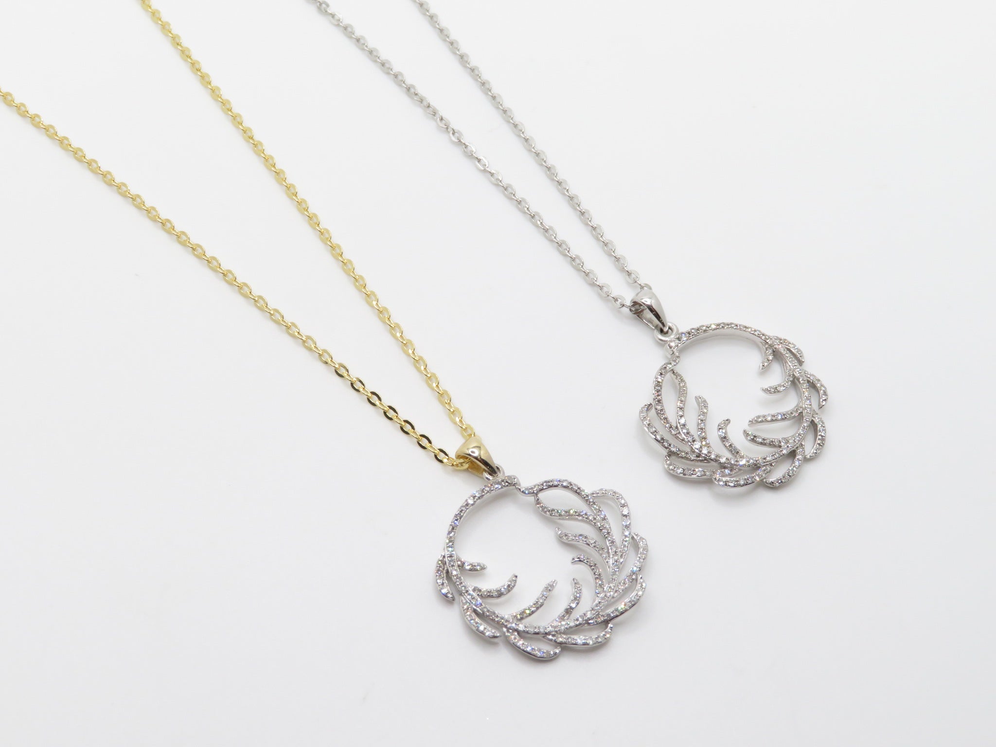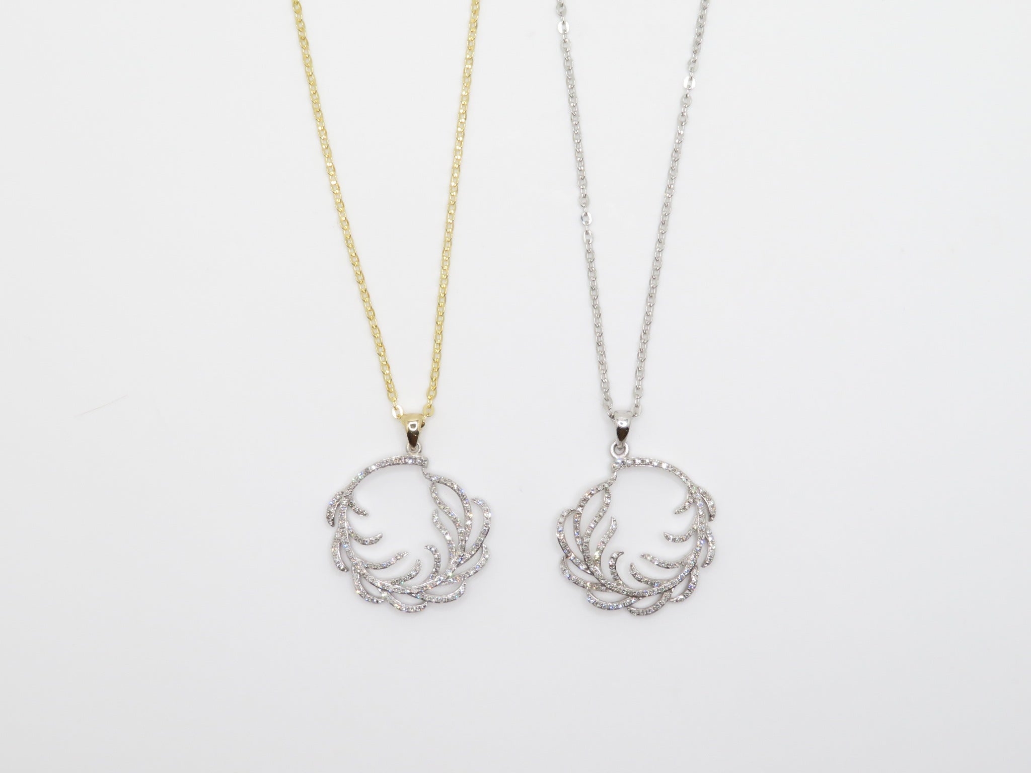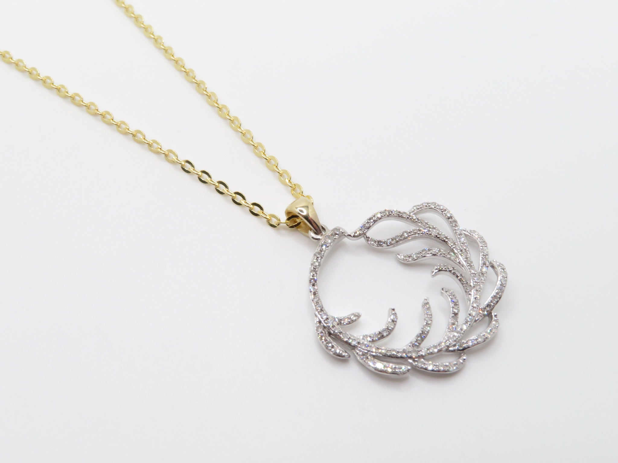 This delicate diamond wreath pendant celebrates the beauty of nature's perfect circle. A unique and eye catching diamond pendant strung on our favourite Diamond-Cut Open Cable chain, available in white or yellow gold. Set with natural diamonds, this piece personifies feminine and grace. Layer it, wear it solo, or let it be your signature piece, this new arrival is one of our new.