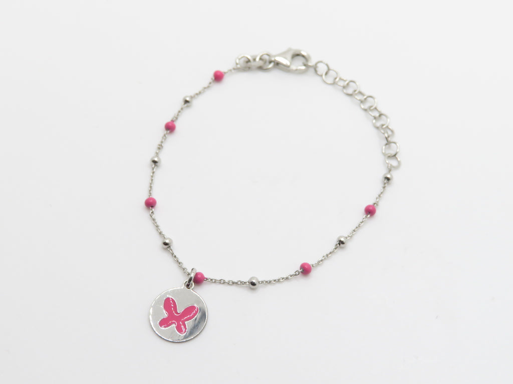 Sterling Silver Pink Enamel Butterfly Bracelet